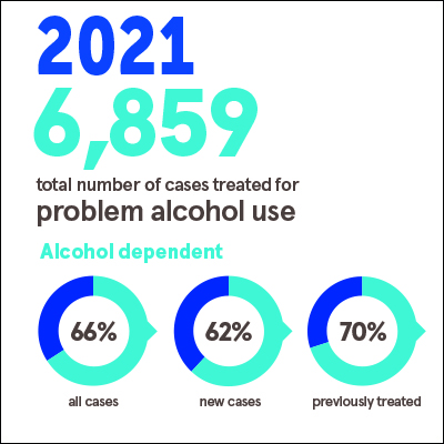 - In 2021, 62% of new cases were classified as alcohol dependent, compared to 57% in 2015.